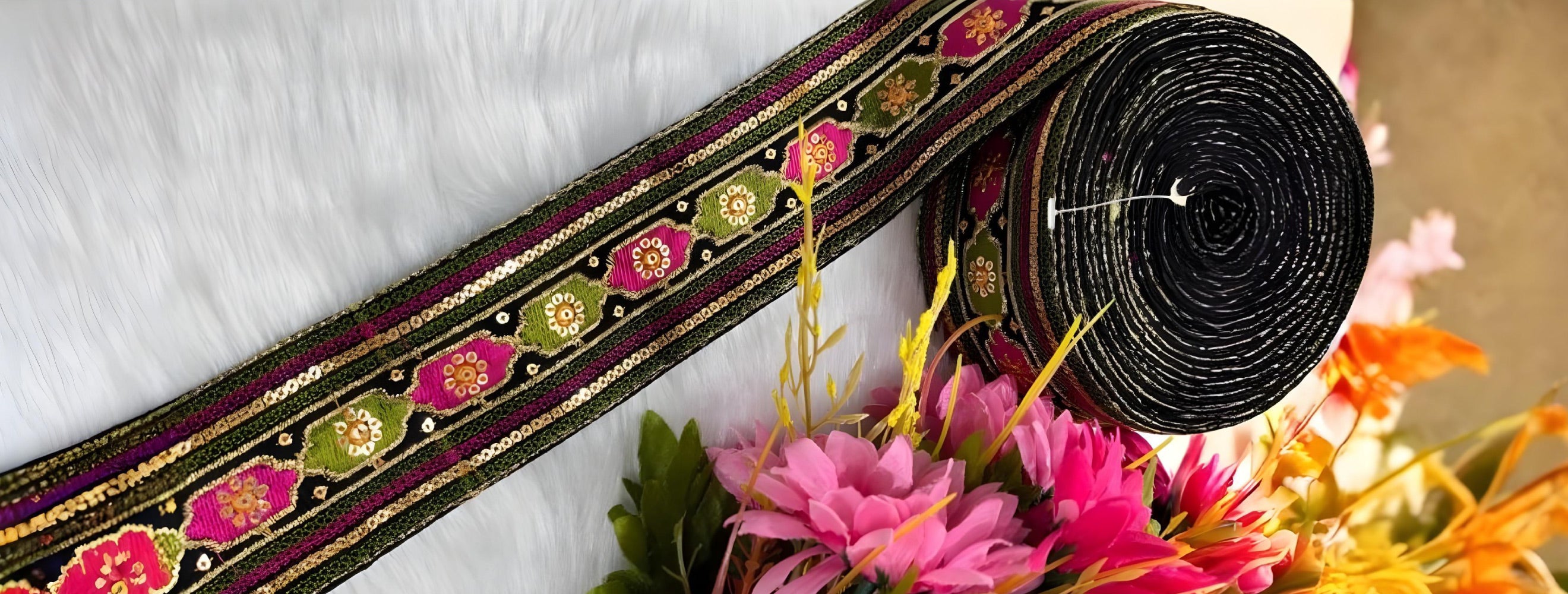 Gorgeous Handwork Imported Lace Trim – Premium Saree Laces & Ethnic Dress Borders (9 Meter) | Black