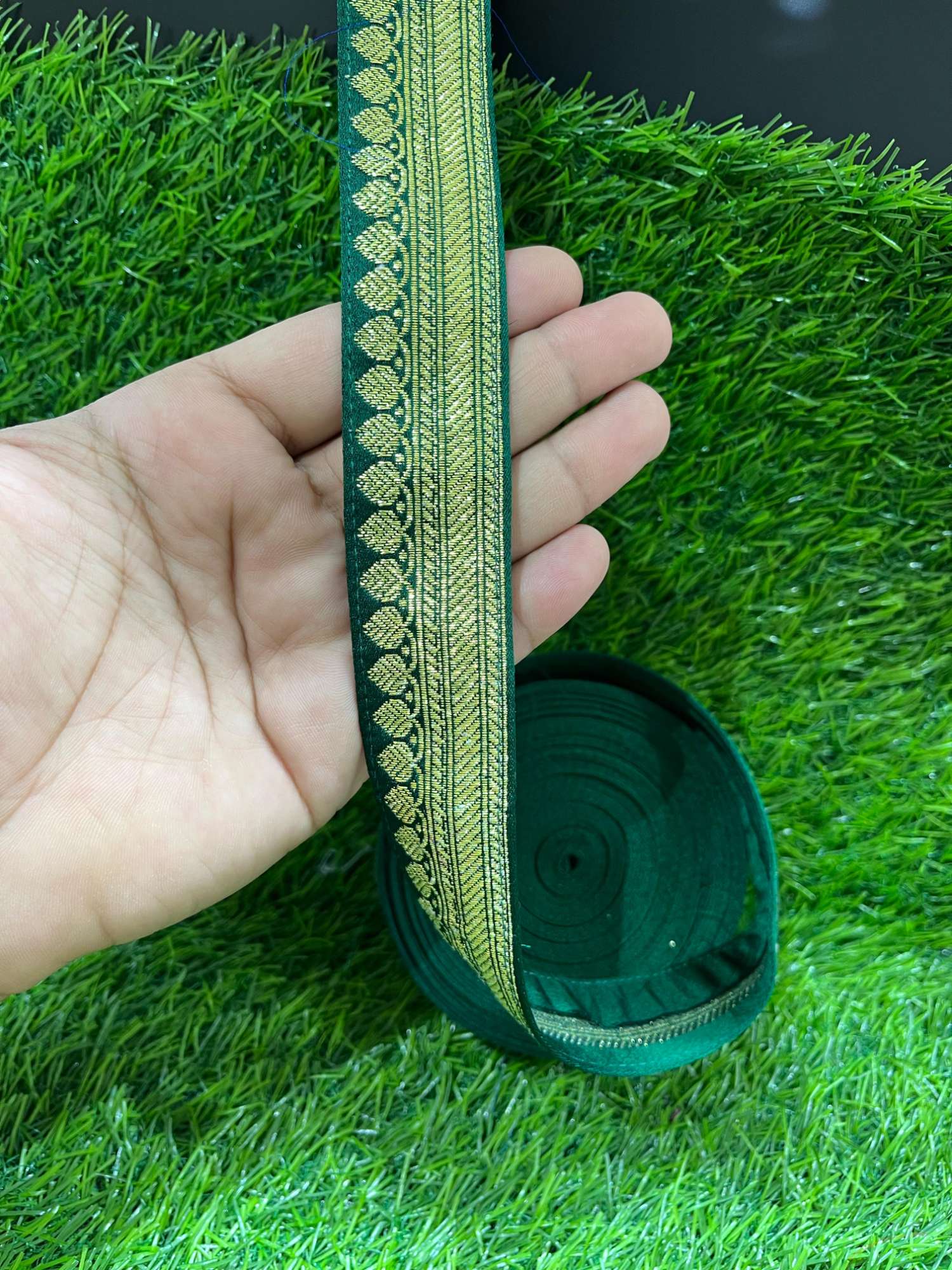 Banarasi Handloom Vintage Pure Silk Border – 9 Meters, 1-Inch Traditional Zari Lace Trim for Sarees & Lehengas | Green