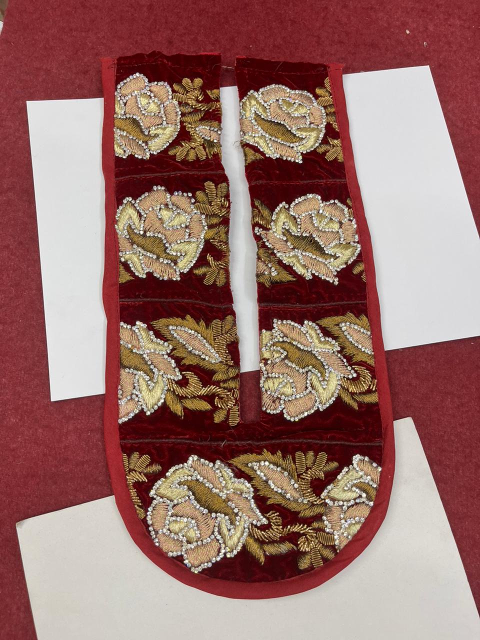 - Beautiful handcrafted Zardosi work neck patch featuring intricate detailing and rich traditional craftsmanship