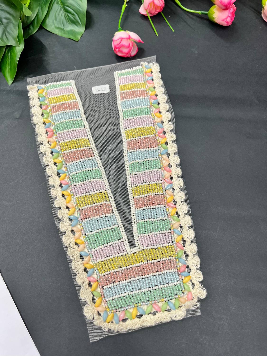 Beautiful Multicoloured Bead Work Neck Patch for Kurtis, Dresses & Navratri Outfits – Handcrafted Applique Design | Design 15