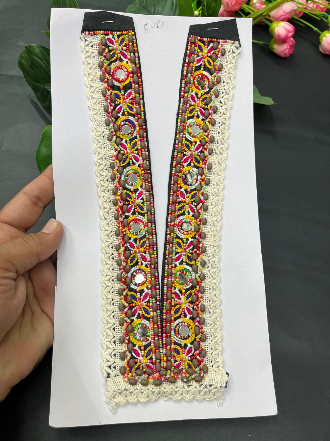 Beautiful Multicoloured Bead Work Neck Patch for Kurtis, Dresses & Navratri Outfits – Handcrafted Applique Design | Design 21