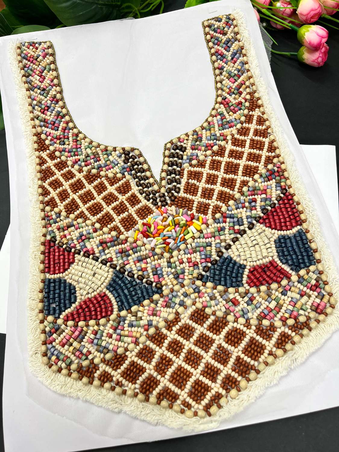 Beautiful Multicoloured Bead Work Neck Patch for Kurtis, Dresses & Navratri Wear – Handcrafted Designer Applique | Design 1