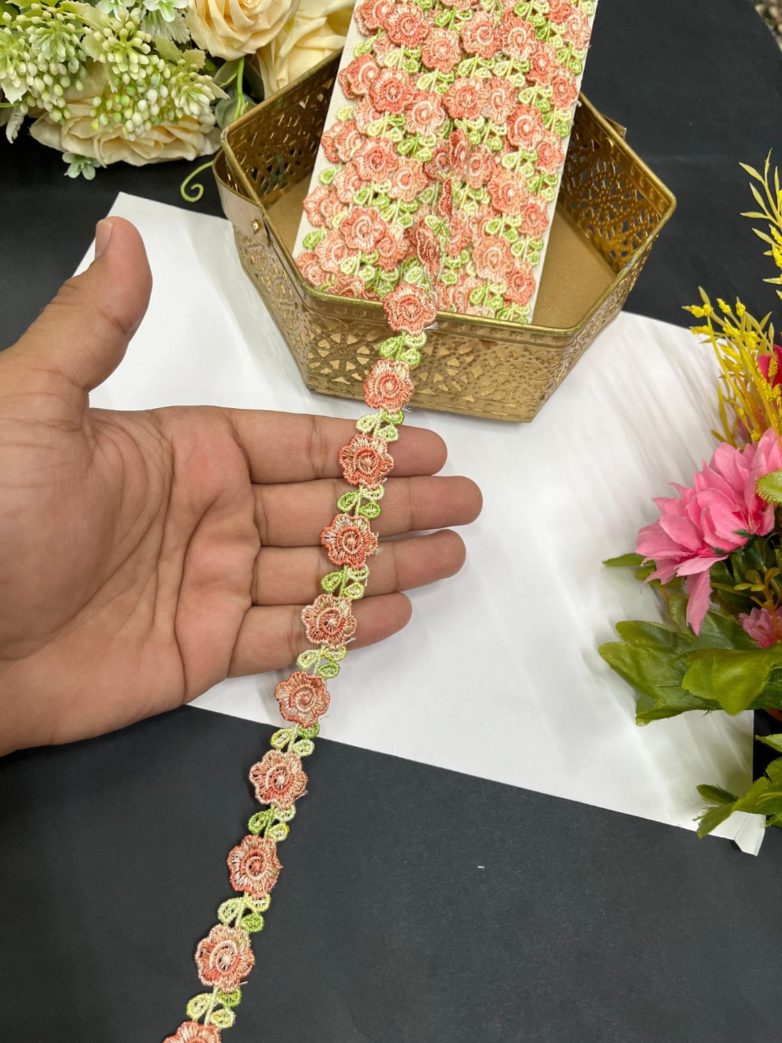 - Perfect For: Sarees, lehengas, dupattas, and dress trims – a great choice for designer saree laces.
