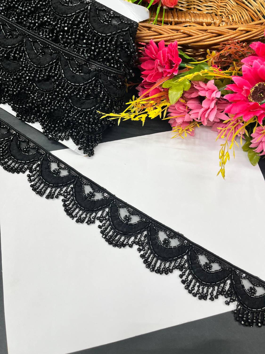 Beautiful Multicoloured Imported Hanging Lace Trim – Premium Saree Laces & Dress Borders (9 Meter) | Black