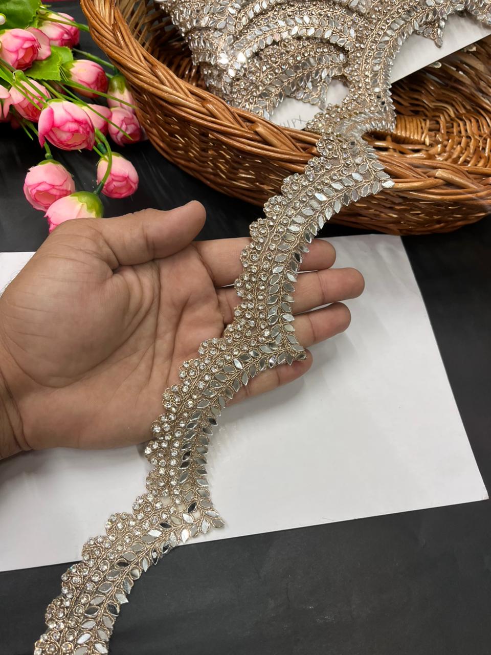 - Elegant handcrafted lace featuring authentic real mirror work accentuated with sparkling rhinestones