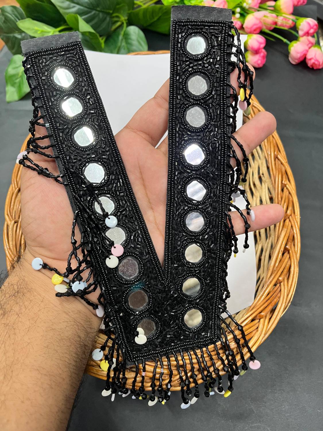 Beautiful Real Mirror Work Handmade Neck Patch for Kurtis, Tops & Navratri Outfits | Black