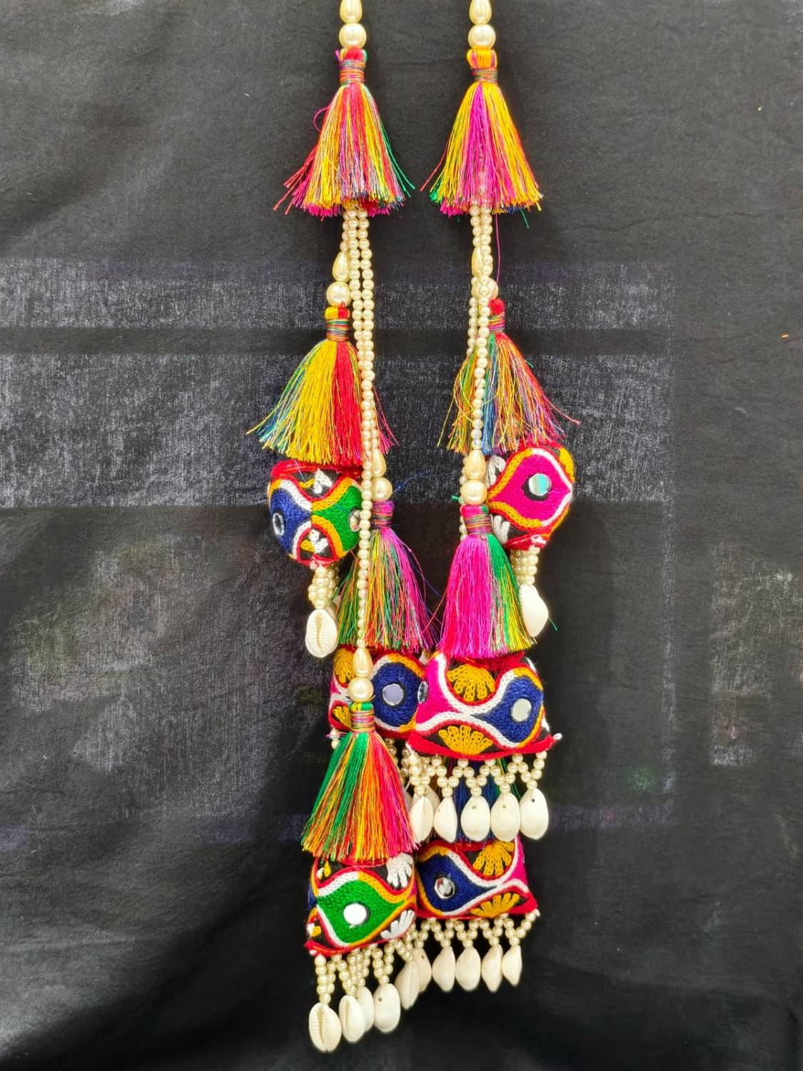 Bright Multi Thread with Shell Tassels – Decorative Accessory for Blouses, Sarees, Dupattas, and Lehengas – Sold as a Pair (33 cm)