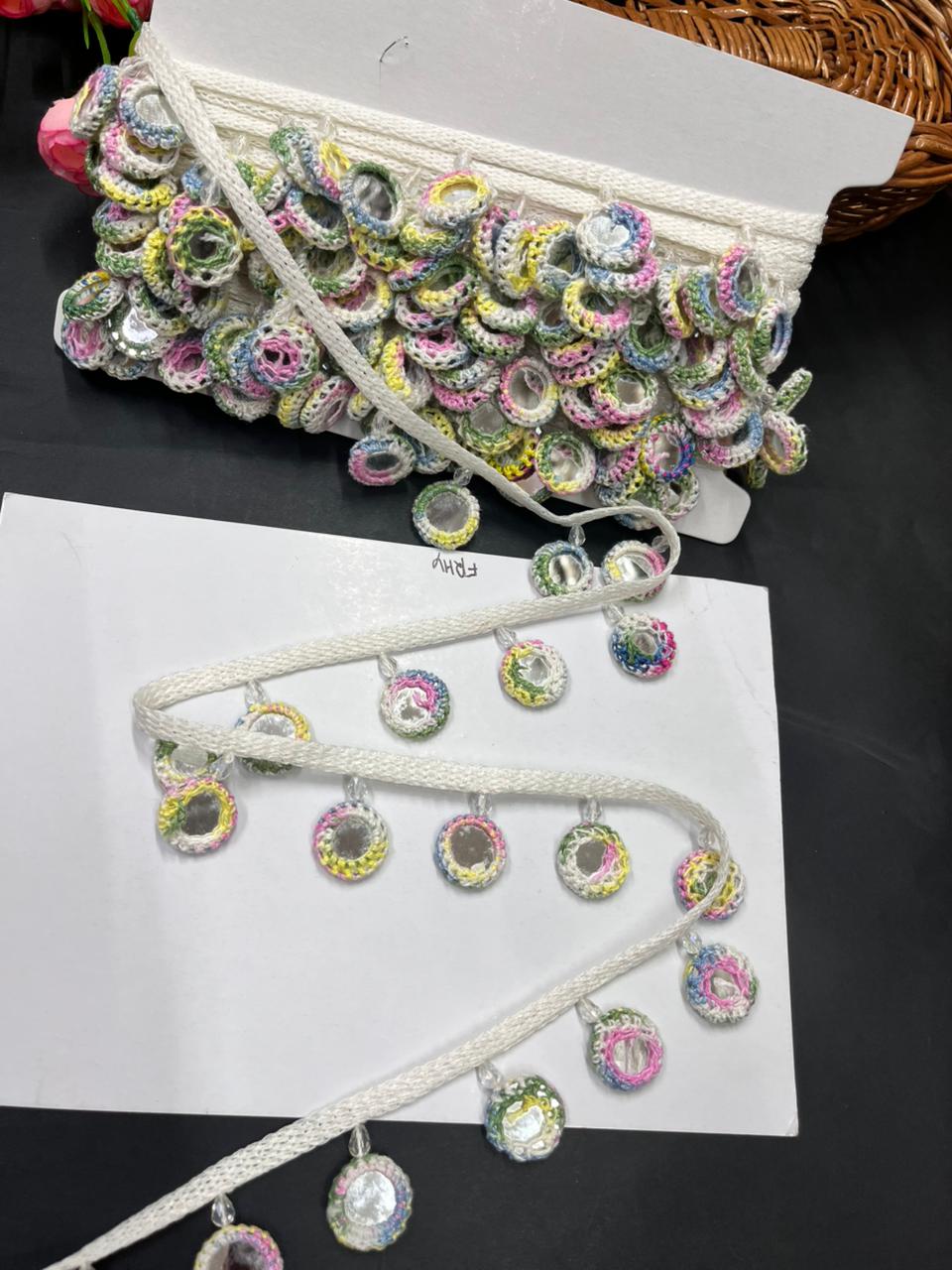 Crochet Mirror Hanging Laces – Handmade Latkan Border Trim for Sarees, Dupattas & Ethnic Wear (9 Meter) | Multi6