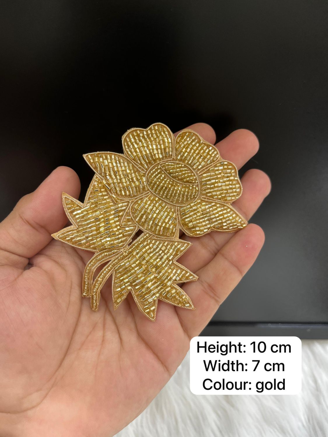 - Handcrafted patch featuring an elegant flower motif with fine Cutdana beadwork