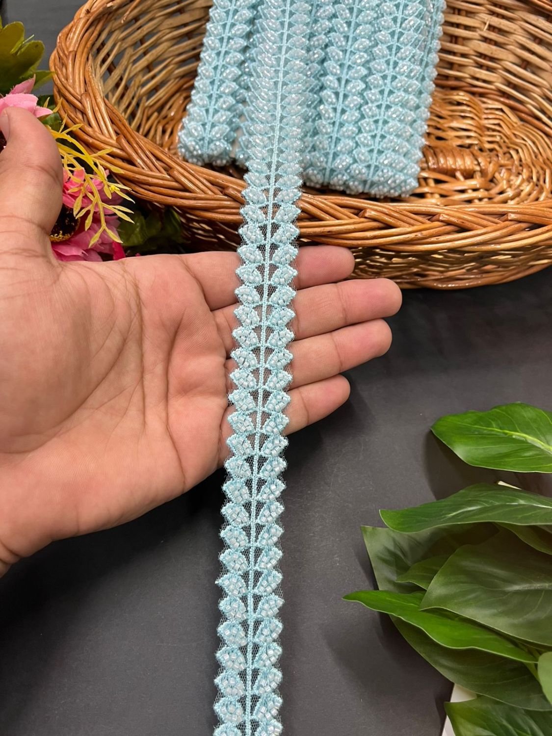 Cutdana Work Imported Lace – Decorative Lace for Sarees, Dupattas, and Dresses (9 mtr, 1 inch) | Firozi
