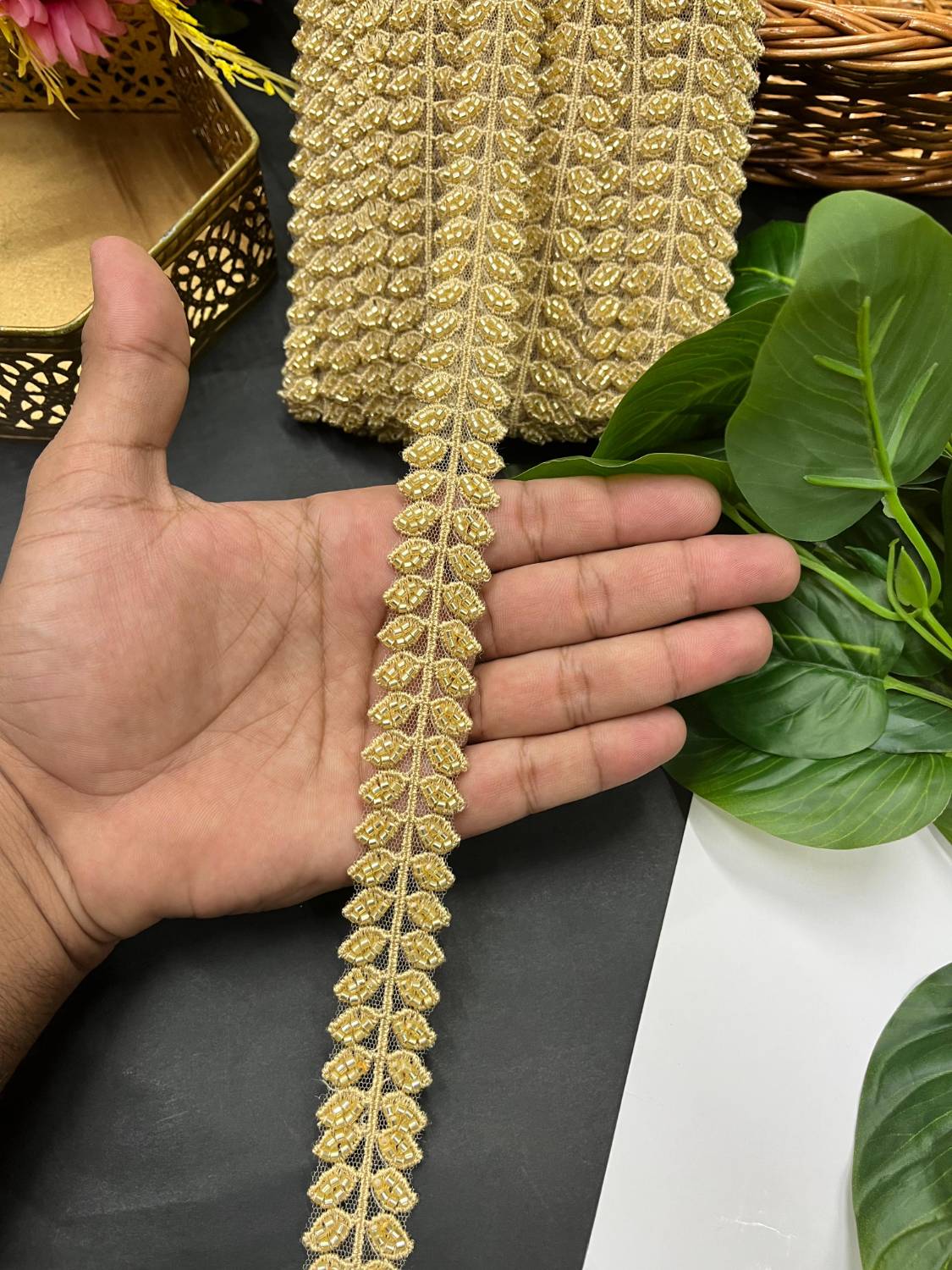 Cutdana Work Imported Lace – Decorative Lace for Sarees, Dupattas, and Dresses (9 mtr, 1 inch) | Golden