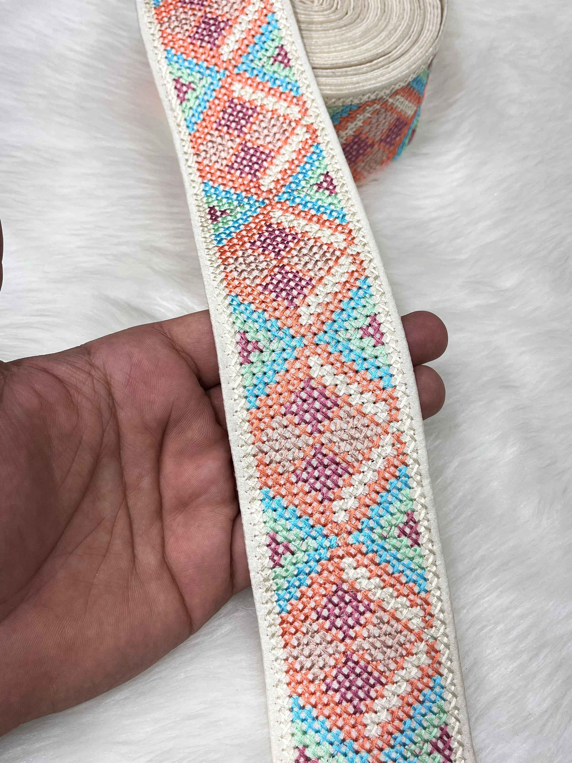 Designer Cross Stitch Lace Border Trim - 9 Meter, 2 Inch Width | Design 4