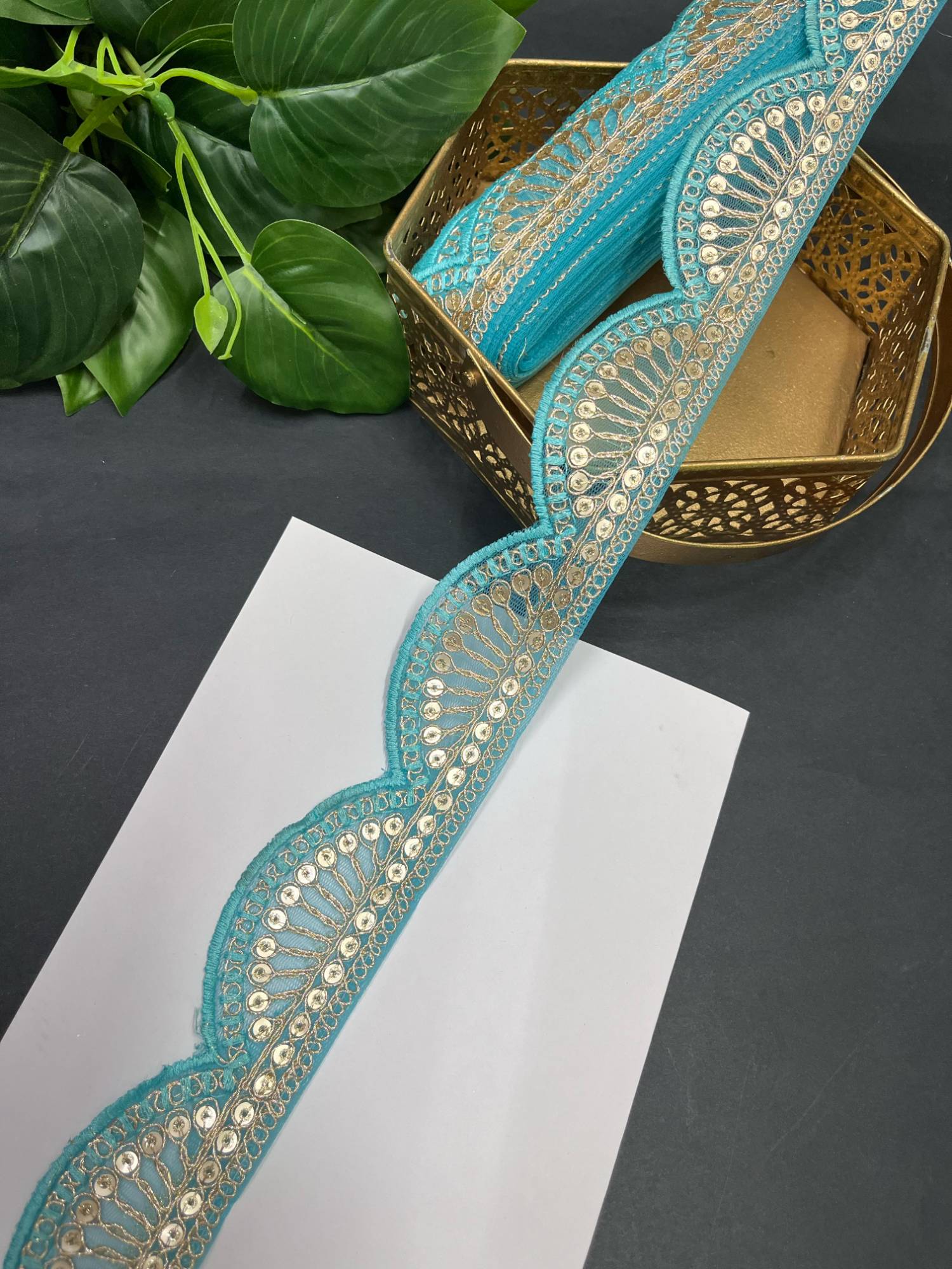 Designer Scalloped Embroidery Saree Lace – 9 Meters, 2-Inch Tone-to-Tone Embroidered Border for Lehengas & Dupattas | Firozi