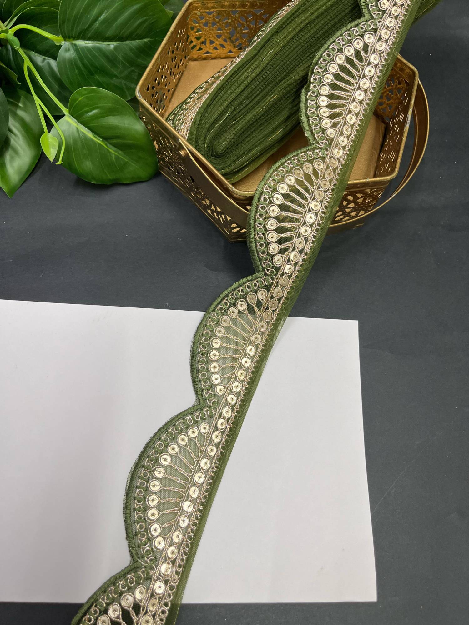 Designer Scalloped Embroidery Saree Lace – 9 Meters, 2-Inch Tone-to-Tone Embroidered Border for Lehengas & Dupattas | Mahendi