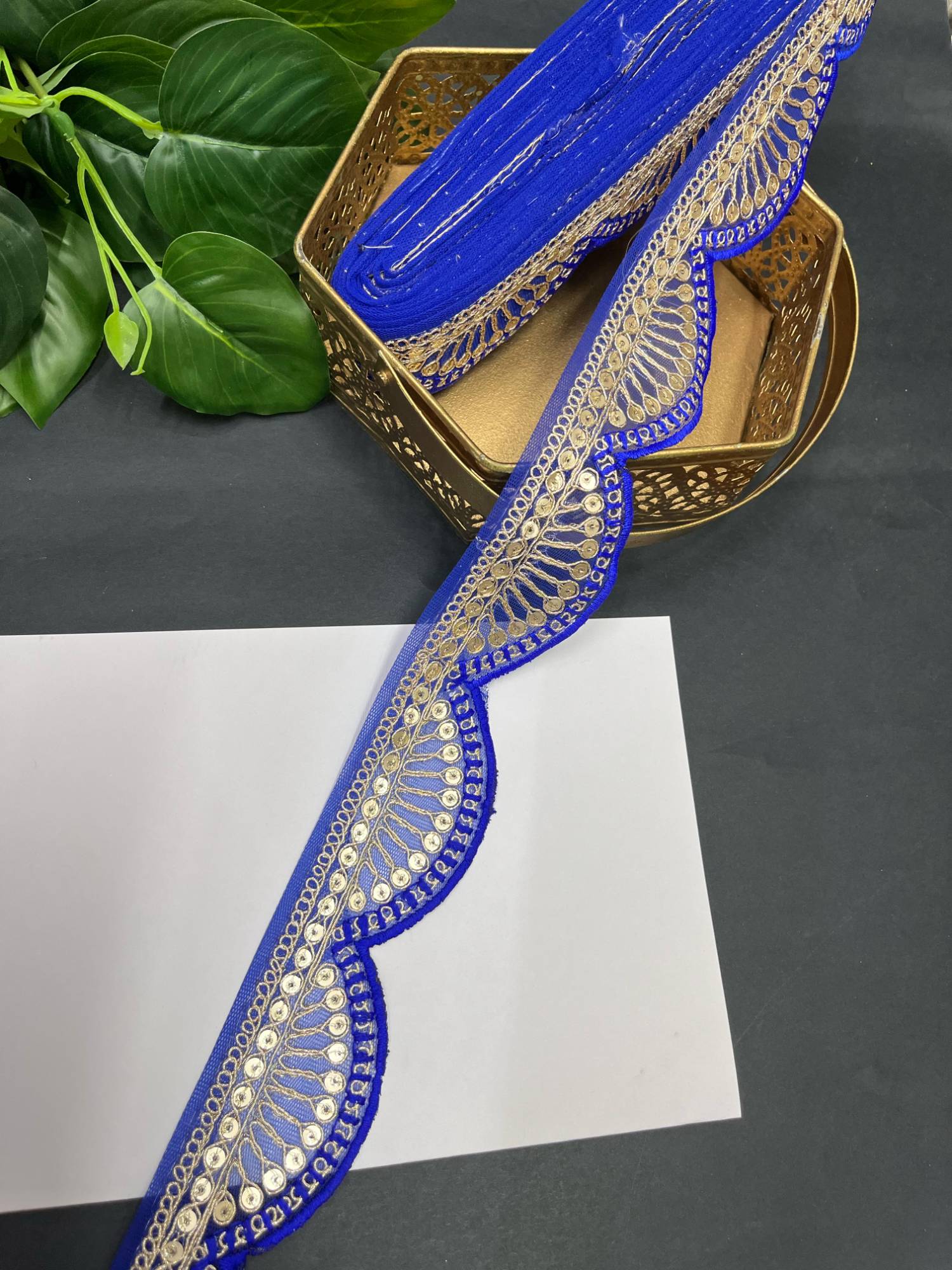 Designer Scalloped Embroidery Saree Lace – 9 Meters, 2-Inch Tone-to-Tone Embroidered Border for Lehengas & Dupattas | Royal Blue