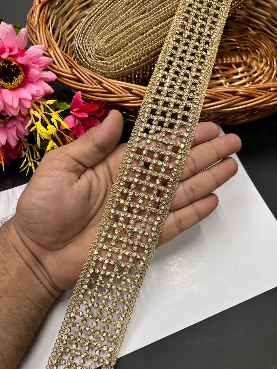 Diamond Cutwork Laces – Premium Gold Embroidery Borders for Sarees, Lehengas & Dupattas (9 Meter, 2 Inch Width) | Antique