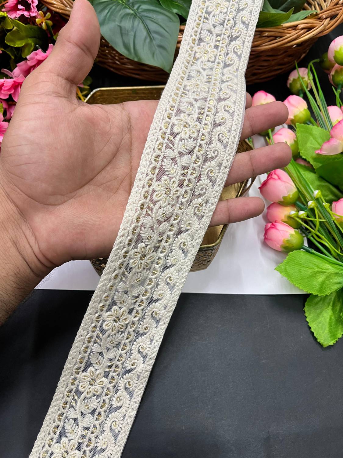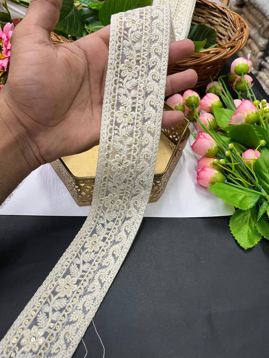 Dyble Cotton Lucknowi Chikankari Lace – Decorative Lace for Sarees, Dupattas, and Dresses (9 mtr, 2 inch) | White