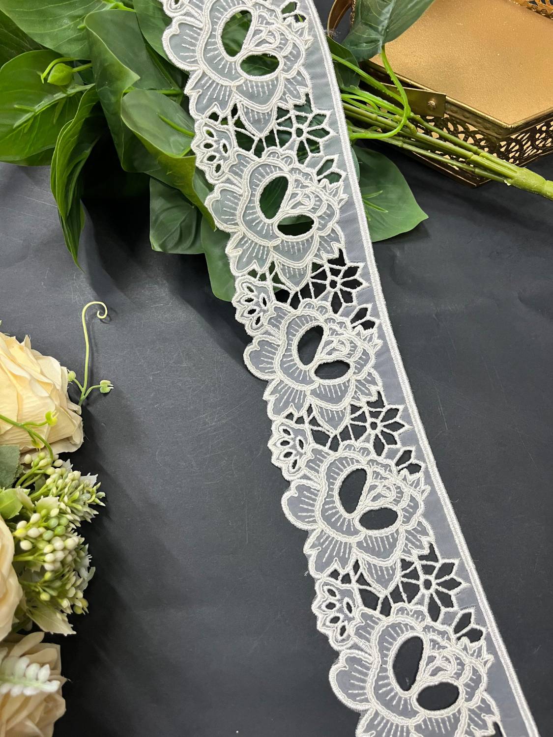 Elegant White Scalloped Imported Lace Trim – Premium Saree Laces & Dress Borders (9 Meter) | Cream