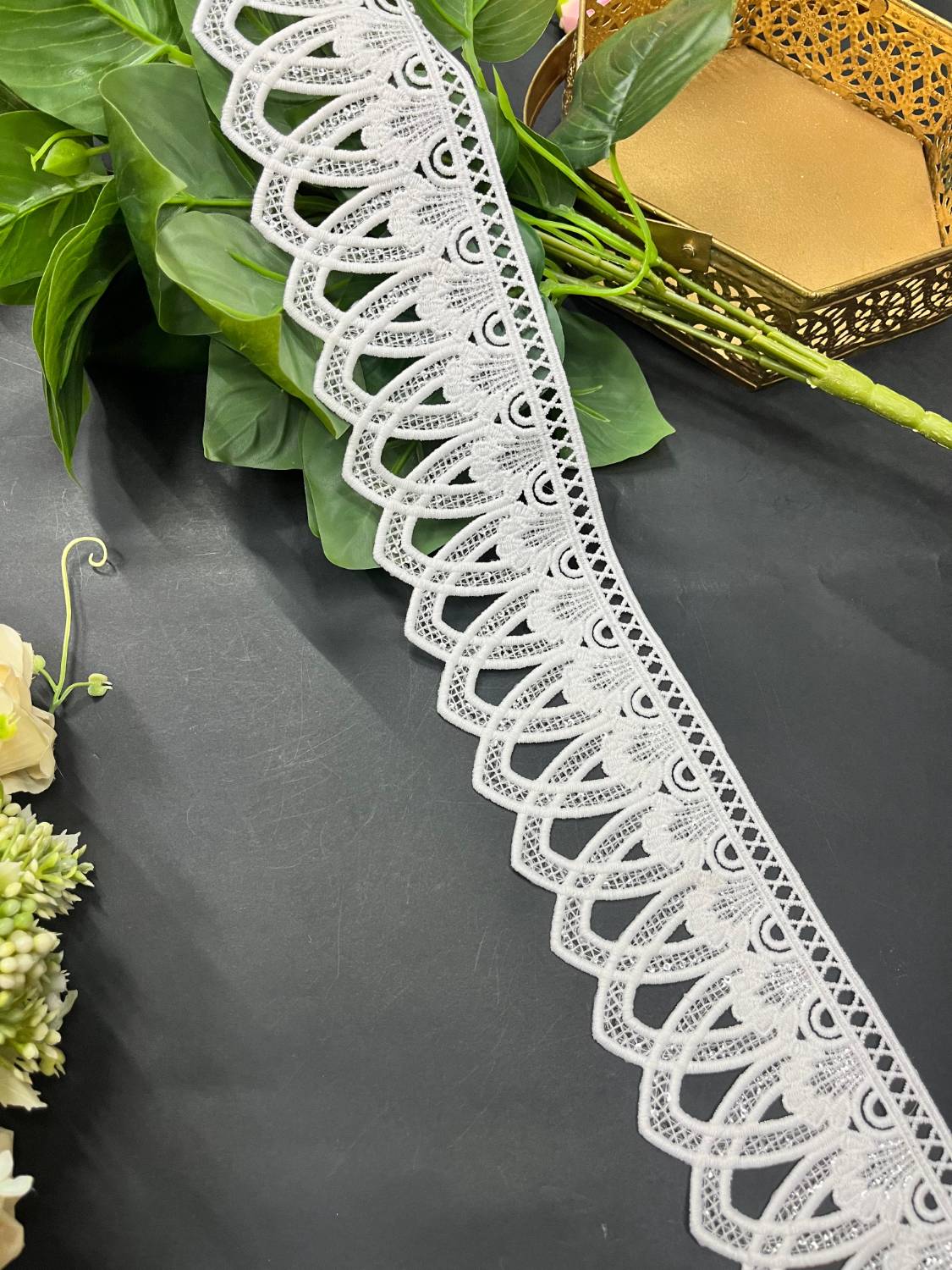 - Length: 9 meter – High-quality white scalloped lace with sparkling sequin embellishments.