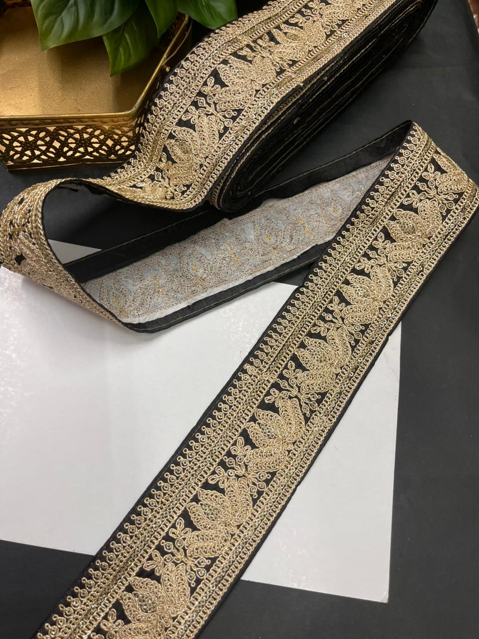 Embroidered Laces for Sarees & Bridal Wear – Premium Designer Border Trim for Dupattas & Lehengas (9 Meter, 3 Inch Width) | Black