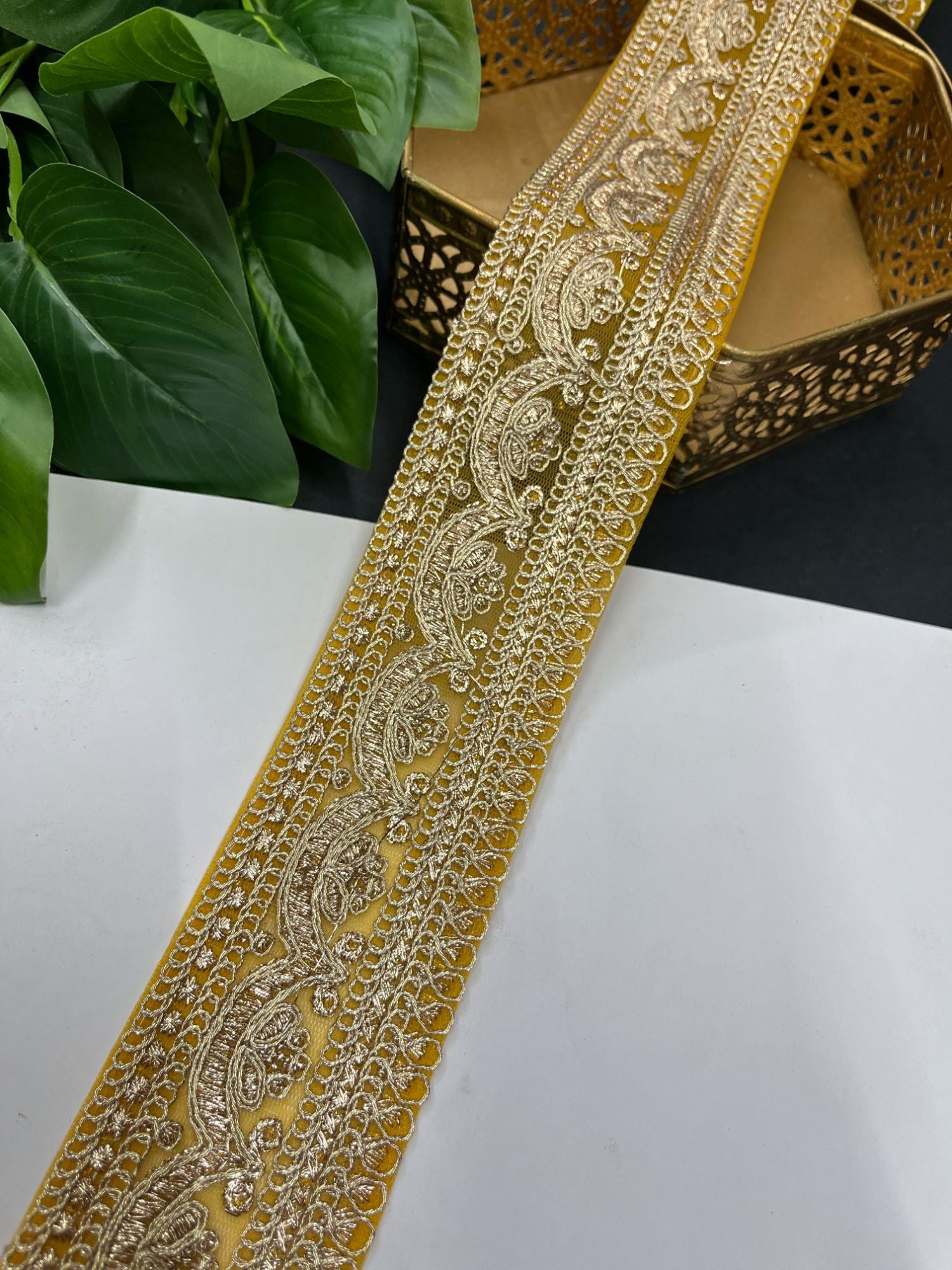 Embroidery Designer Lace on Net Fabric – 9 Meters, 2.5-Inch Width | Yellow