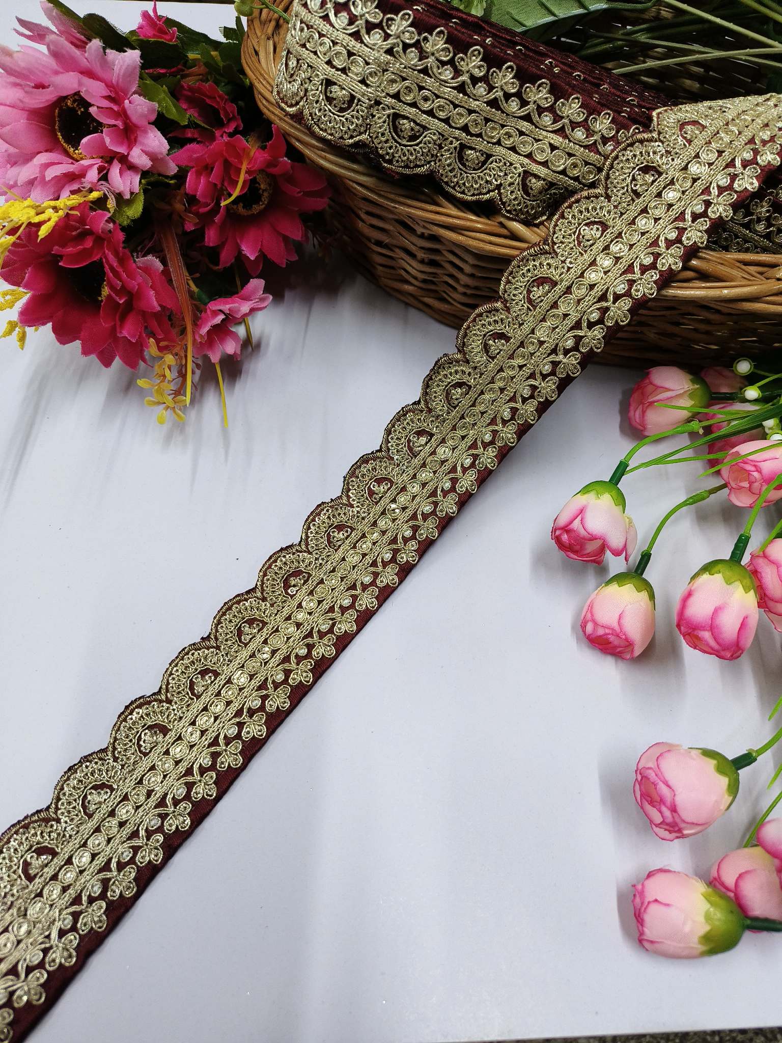 Embroidery Laces Saree Dupattas Borders – Premium Quality, Intricate Embellishments for Sarees, Lehengas, Bridal Couture, and Luxury Home Decor - Maroon