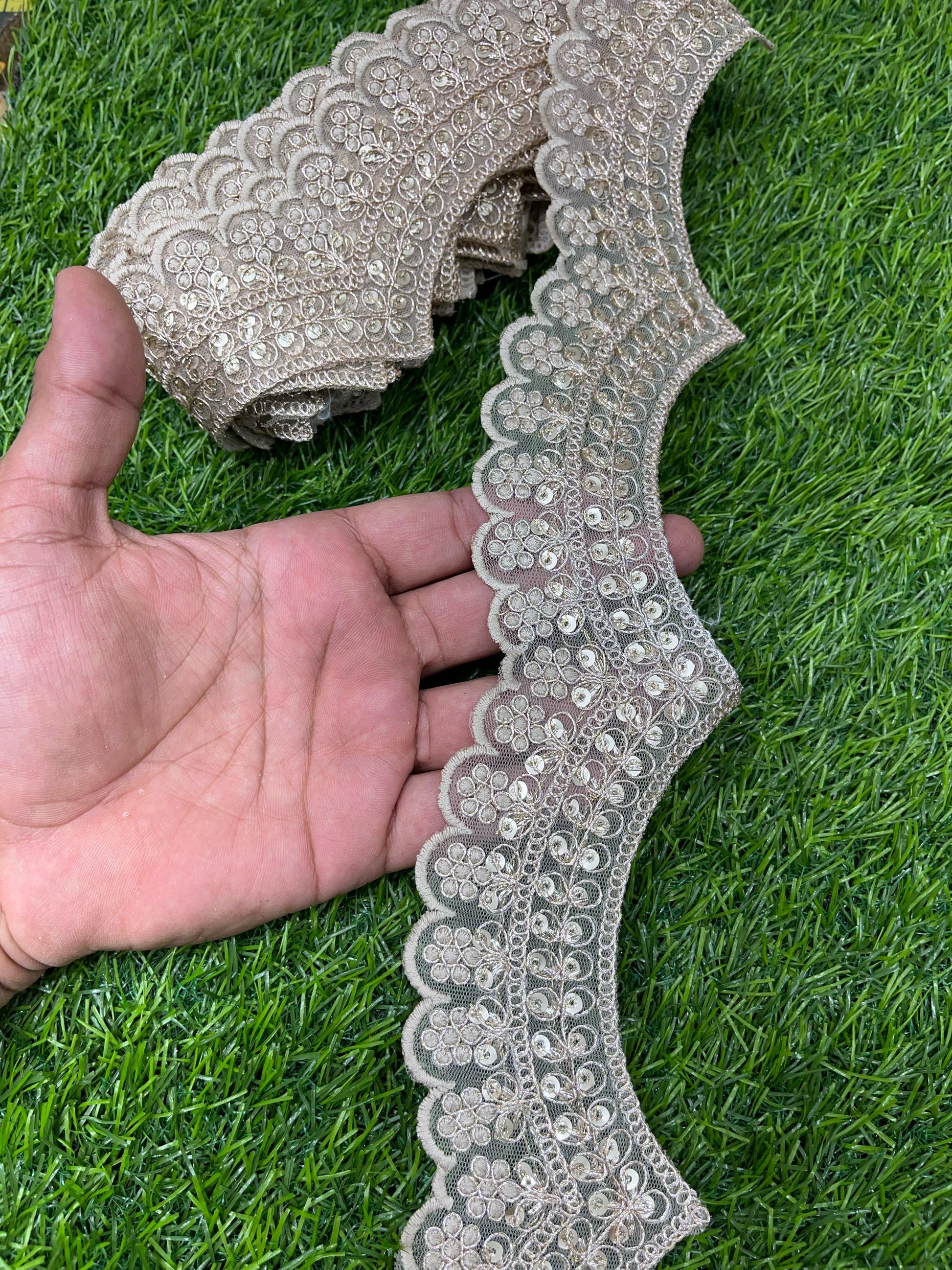 Embroidery Scallop Lace | Sequins Embellishment Trim | Craft Decorative Saree Lace – 9 Meters, 2-Inch Width | Gold