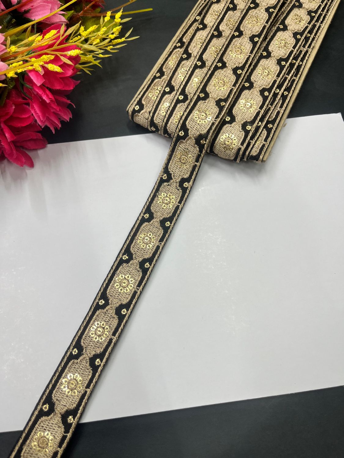 We source only the finest materials, including high-quality threads, beads, sequins, and fabrics. Our commitment to quality ensures that every saree border, lace, and blouse is durable and visually appealing.