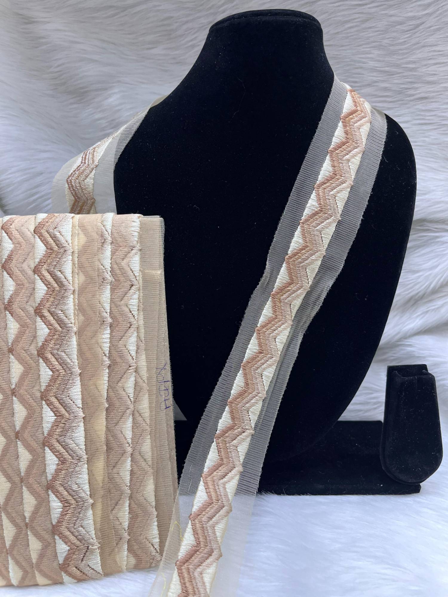 Each saree border and lace features delicate embroidery, sequins, or beading. This stage involves carefully layering details to create depth and texture, giving each product a distinctive, luxurious look.