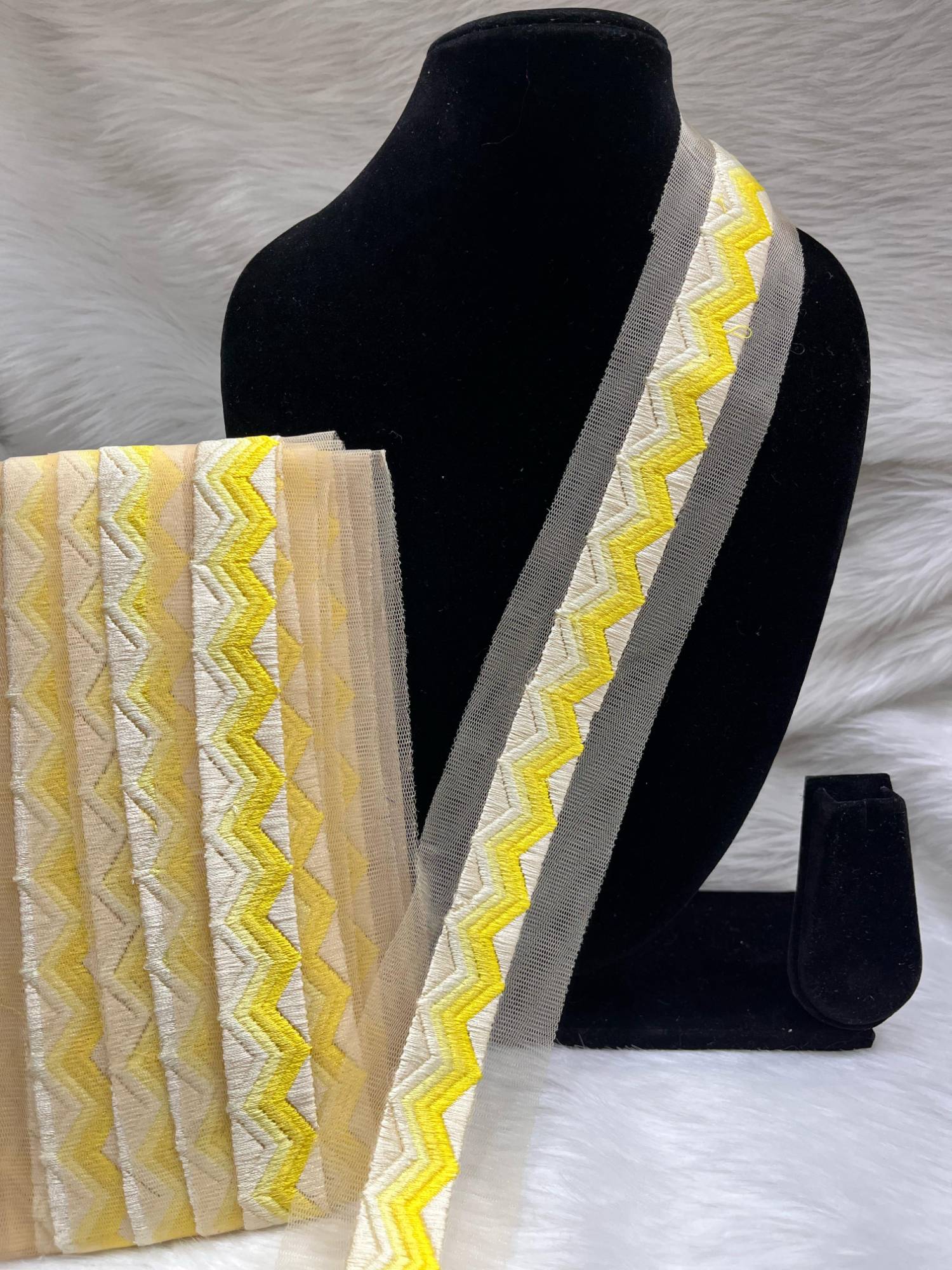 Exquisite Resham Work & Thread Lace – 9 Meters, 1-Inch Embroidered Border for Sarees, Lehengas & Dupattas | Yellow