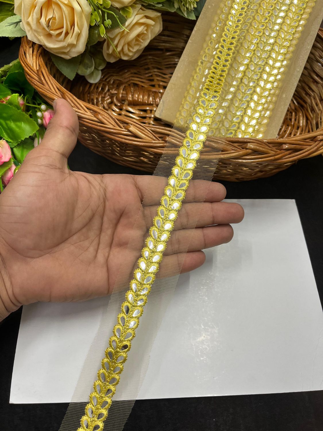 Foil Mirror Lace Trim – Elegant Designer Border for Sarees, Lehengas & Dupattas (9 Meter, 1 Inch Width) | Yellow