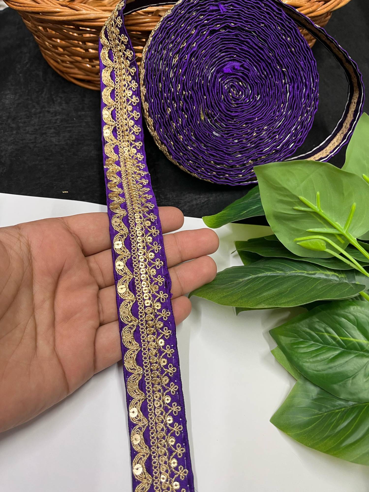Gold Embroidered Saree Laces for Sarees, Kurtis, Dupattas, Dresses & Lehengas – 9 Meters, 1.25-Inch Decorative Border | Purple