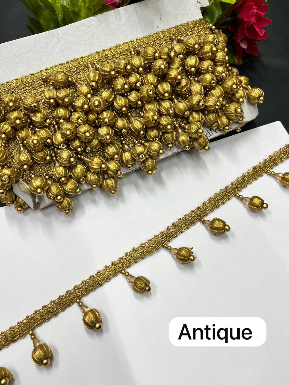 Gota Ball Hanging Lace | Gota Latkan Lace – Decorative Lace for Sarees, Dupattas, and Dresses (9 mtr, 1.5 inch) | Antique