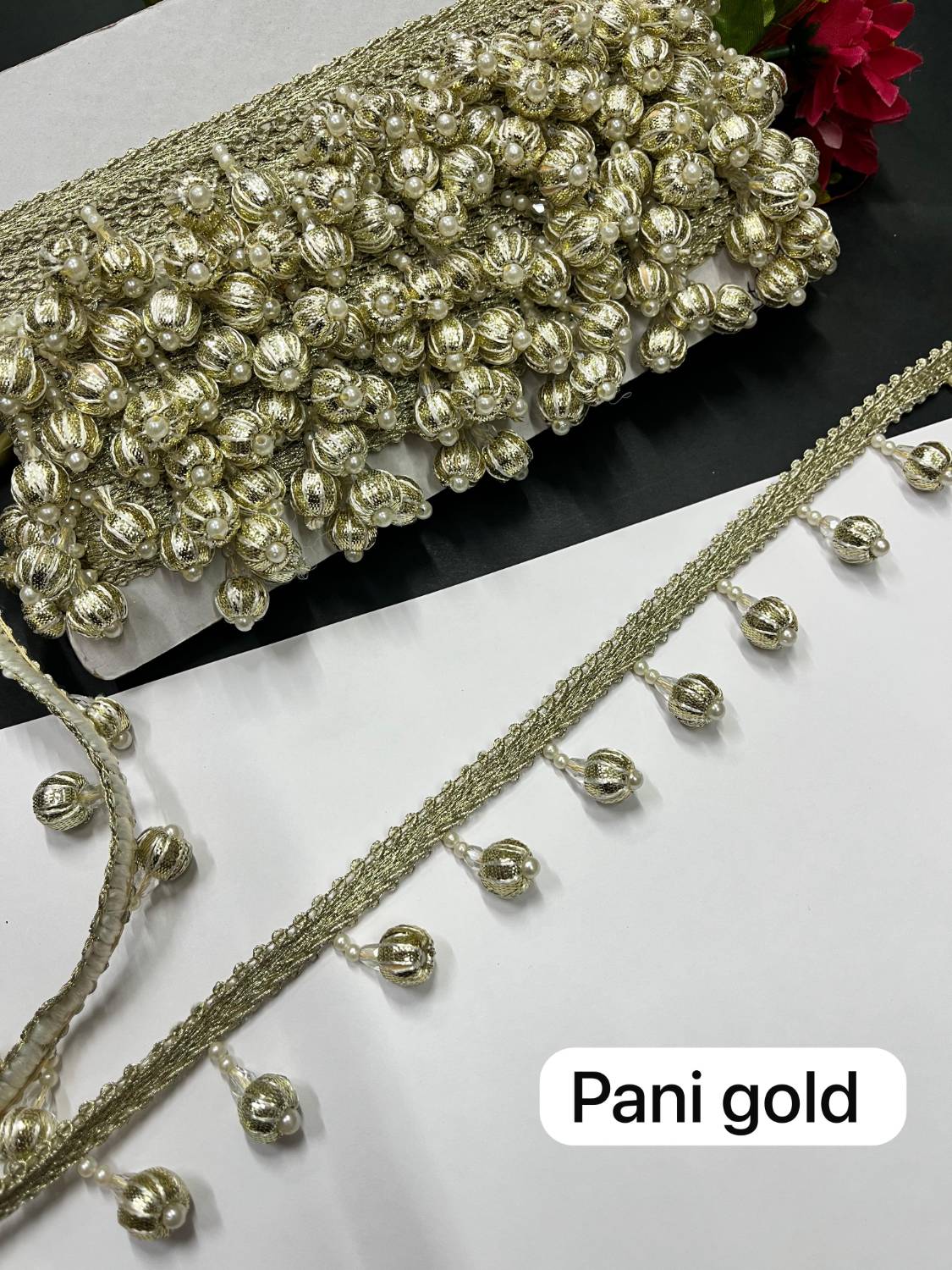 Gota Ball Hanging Lace | Gota Latkan Lace – Decorative Lace for Sarees, Dupattas, and Dresses (9 mtr, 1.5 inch) | Pani Gold