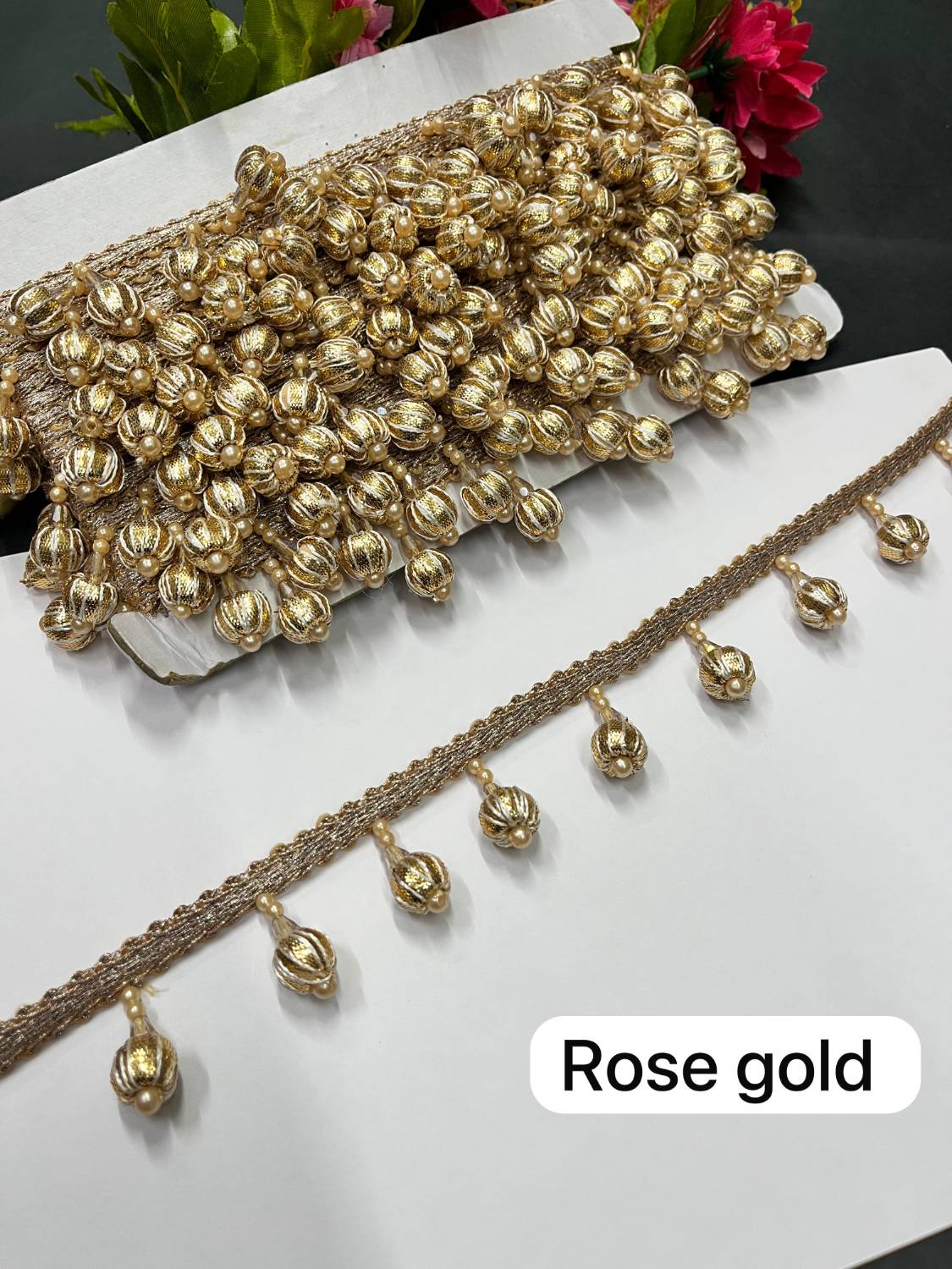 Gota Ball Hanging Lace | Gota Latkan Lace – Decorative Lace for Sarees, Dupattas, and Dresses (9 mtr, 1.5 inch) | Rose Gold