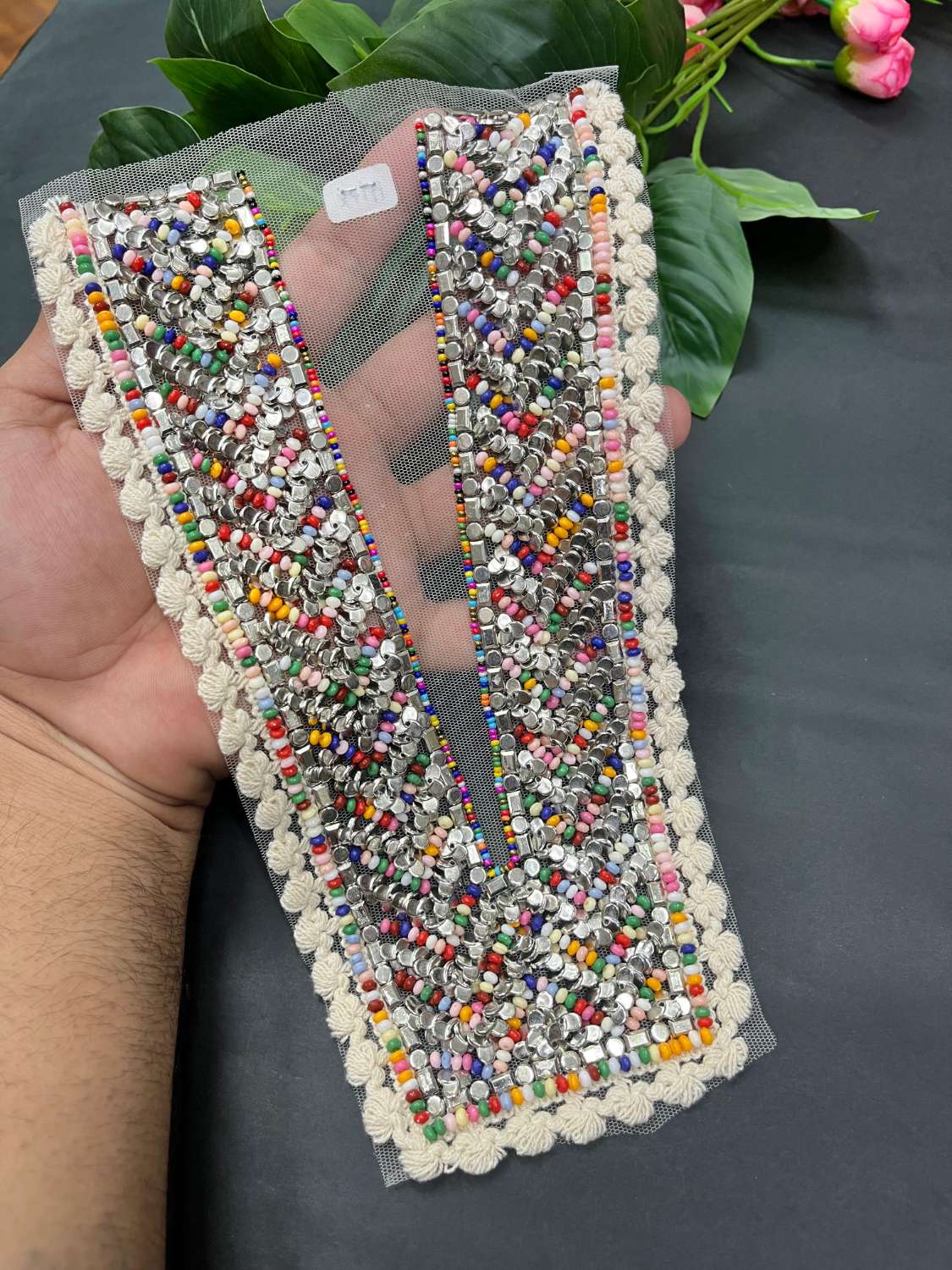 Handcrafted Designer Neck Patch for Kurtis, Dresses & Navratri Outfits – Embroidered Applique Design | Design 6