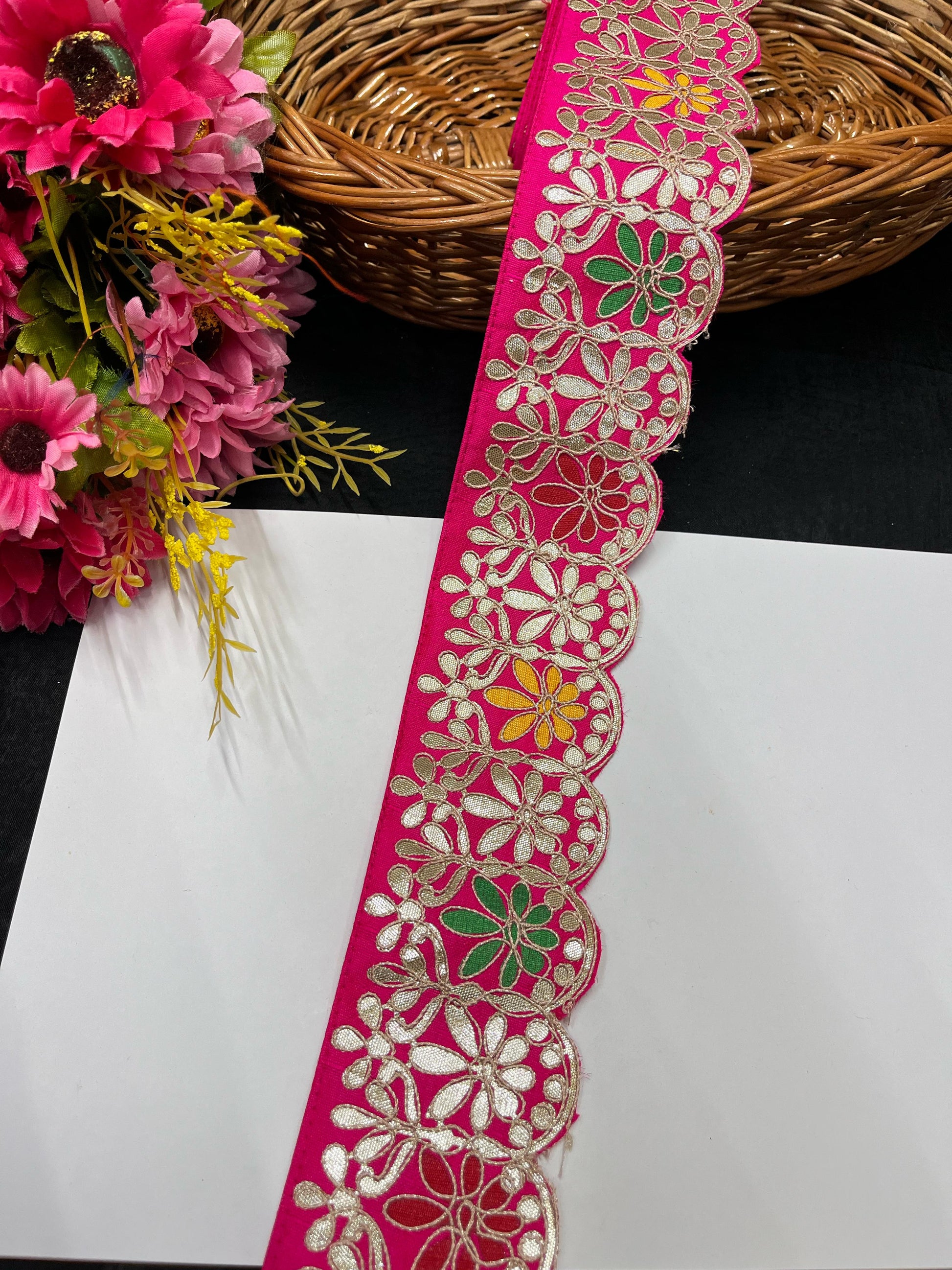 Handcrafted Gota Patti Lace – 9 Meters, 2.75-Inch Traditional Decorative Border Trim for Sarees, Lehengas & Dupattas - Rani Pink
