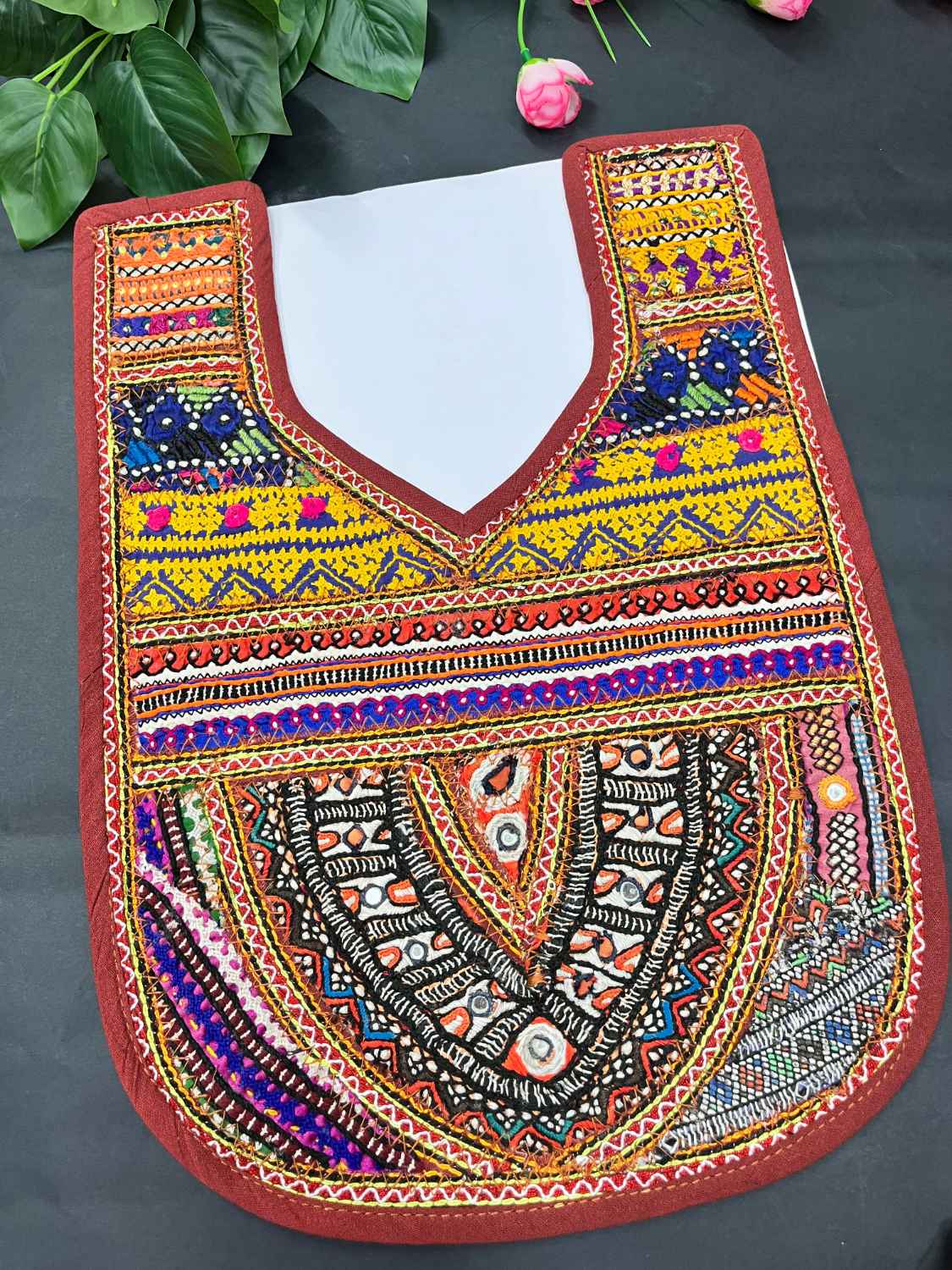 Handcrafted Kutchi Work Neck Patch for Kurtis & Navratri Dresses – Ethnic Neckline Applique | Design 12