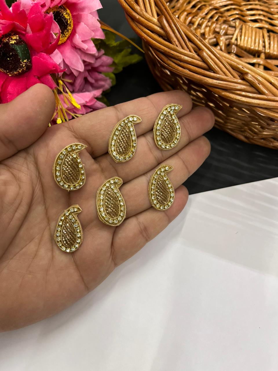 - Handcrafted mango shape zardozi patches designed as a coordinated pack of 12 pieces with intricate traditional detailing