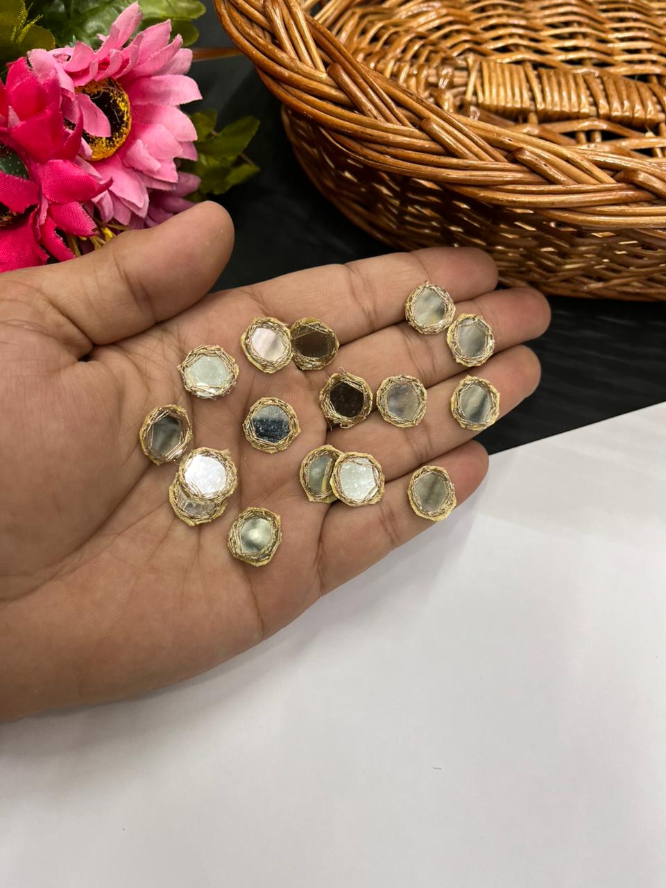 - Handcrafted mirror butti designed as a coordinated pack of 12 pieces with refined detailing