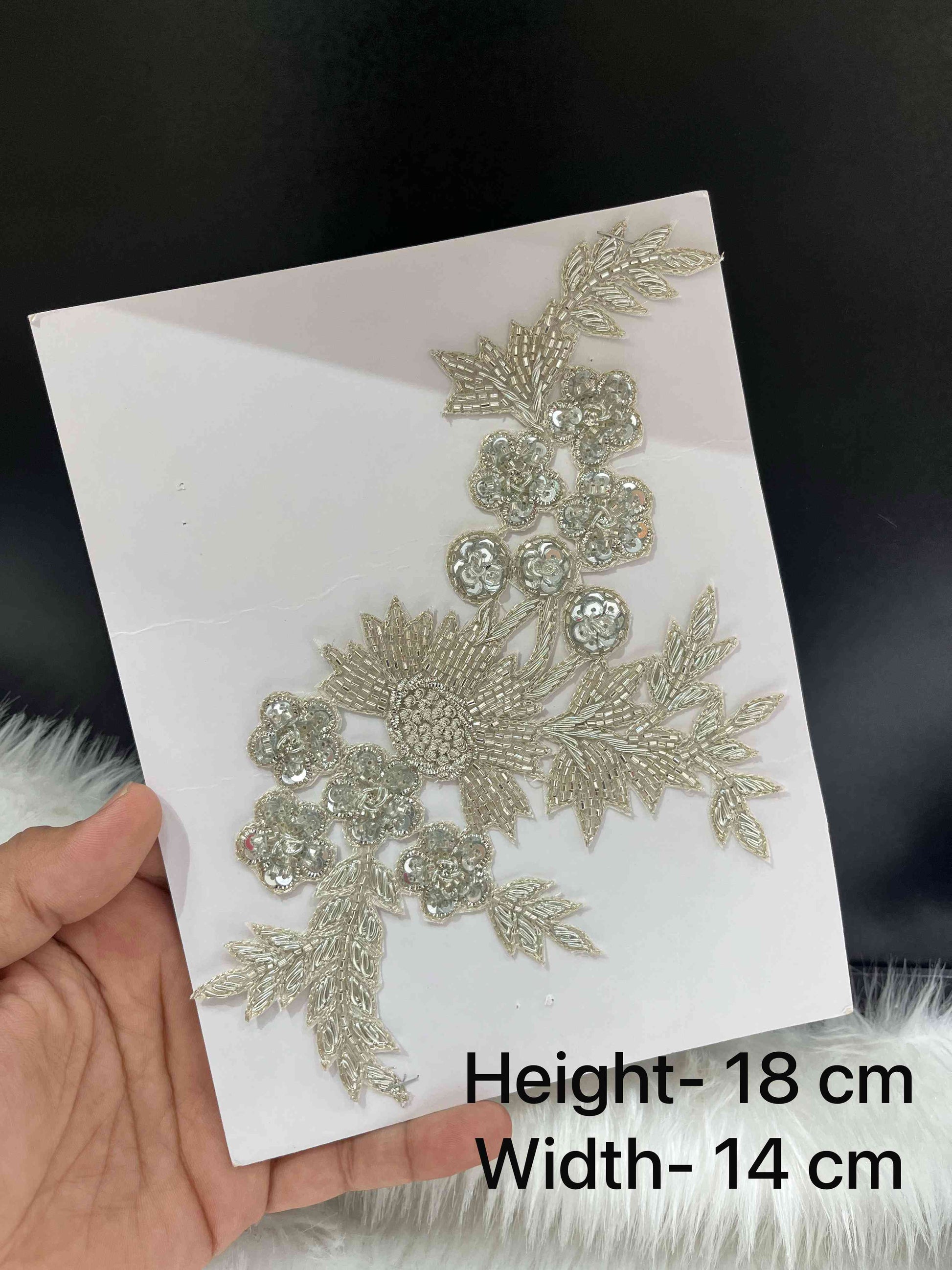 Beautiful handcrafted silver patch with sequin floral embroidery and cutwork detailing – perfect for adding glam to your ethnic and designer outfits.