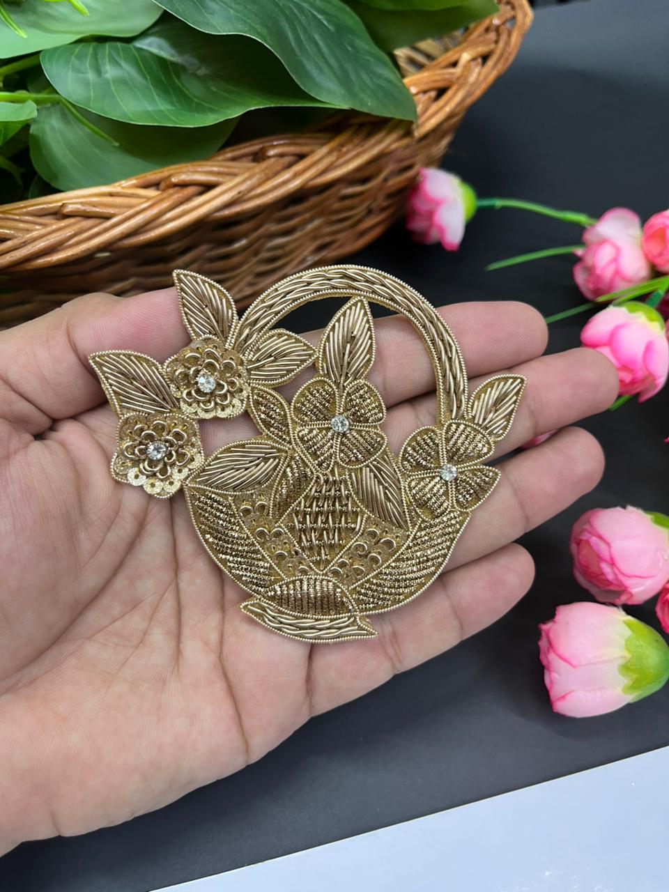 - Elegant handmade zardosi cutwork patch featuring intricate embroidery and fine craftsmanship