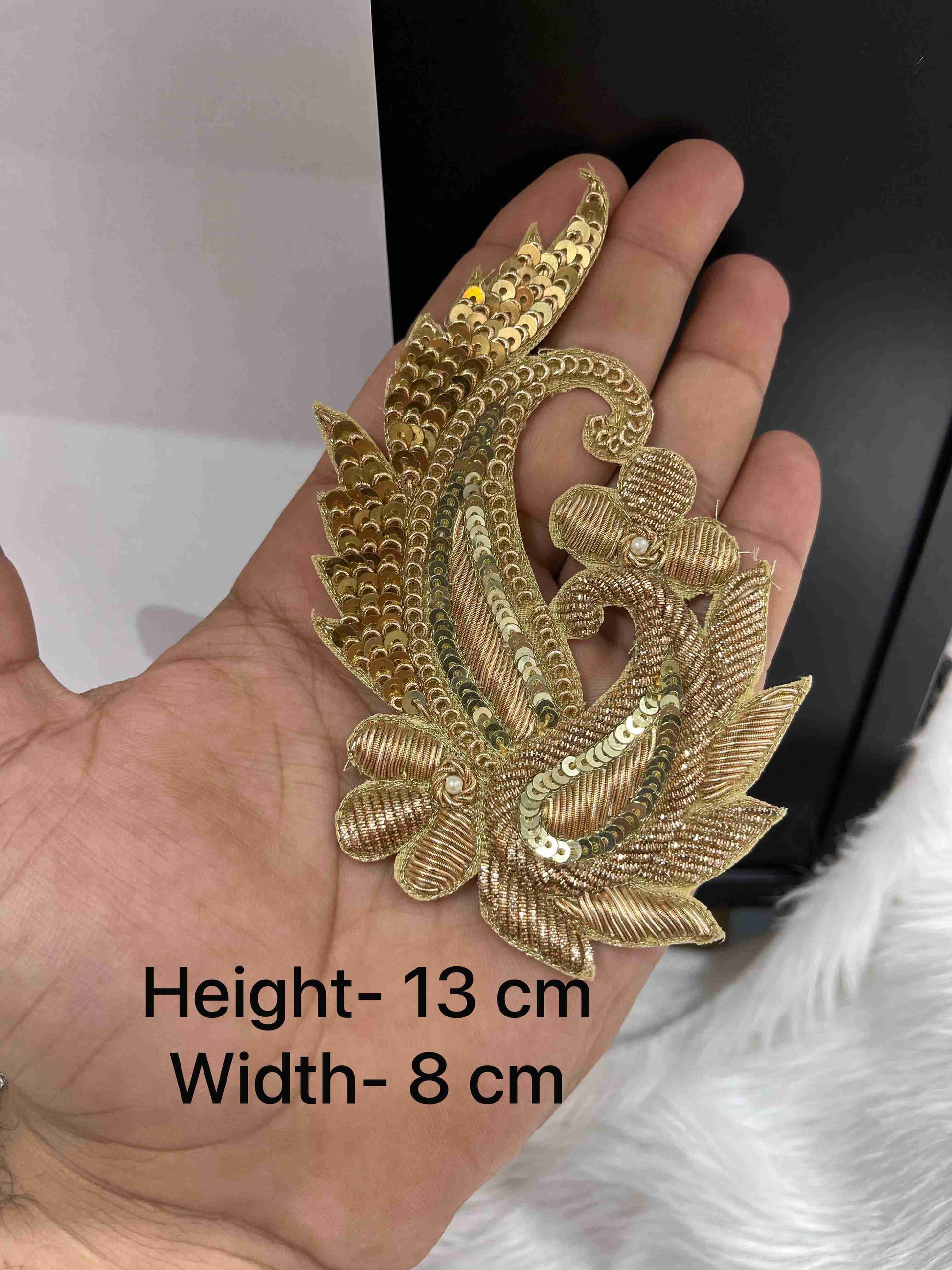 Handmade Zardosi Embroidered Patch for Ethnic Wear & Craft Projects | Gold Appliqué for Sarees, Lehengas, Blouses & DIY Décor