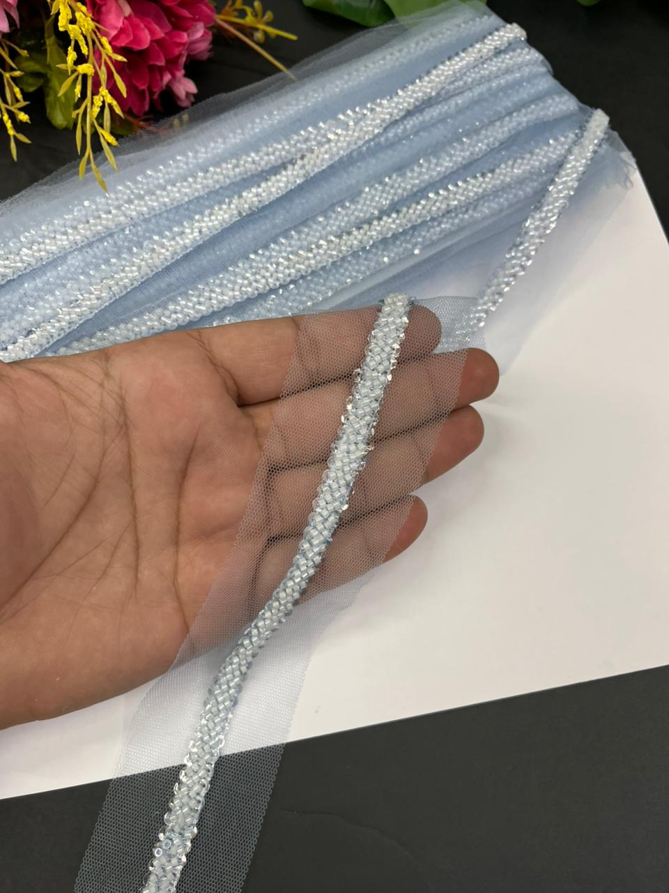 Imported Beaded Lace Trims – Premium Half-Inch Designer Lace for Sarees, Dupattas, Lehengas & Couture Wear (9 Meter) | Blue