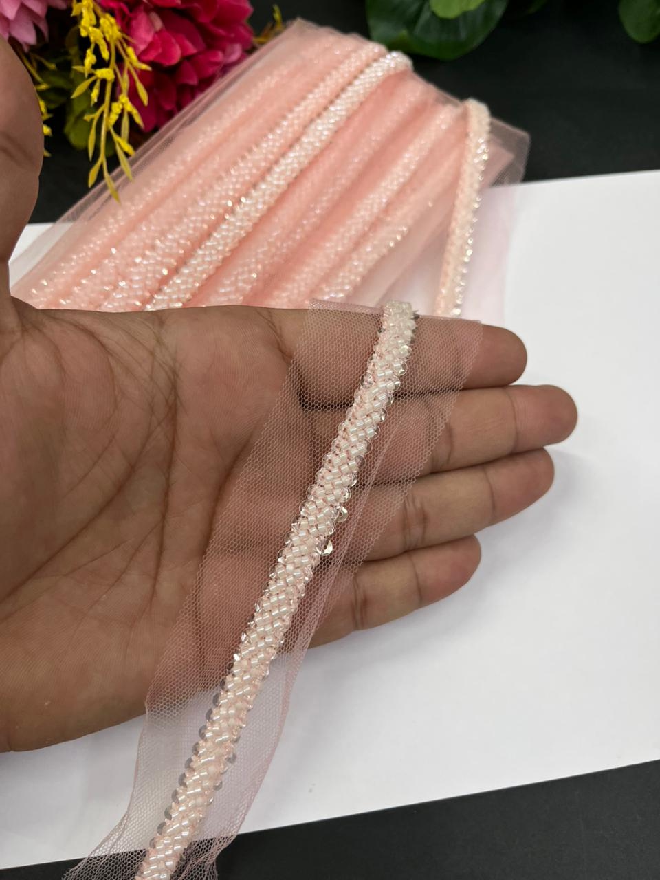 Imported Beaded Lace Trims – Premium Half-Inch Designer Lace for Sarees, Dupattas, Lehengas & Couture Wear (9 Meter) | Peach