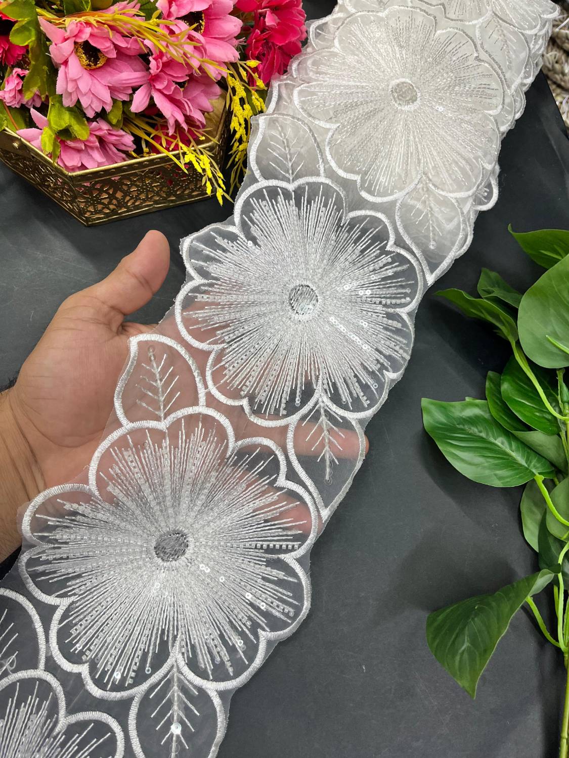 Imported Flower Bead Work Handcrafted Lace – Premium Designer Saree Laces (9 Meter) | White