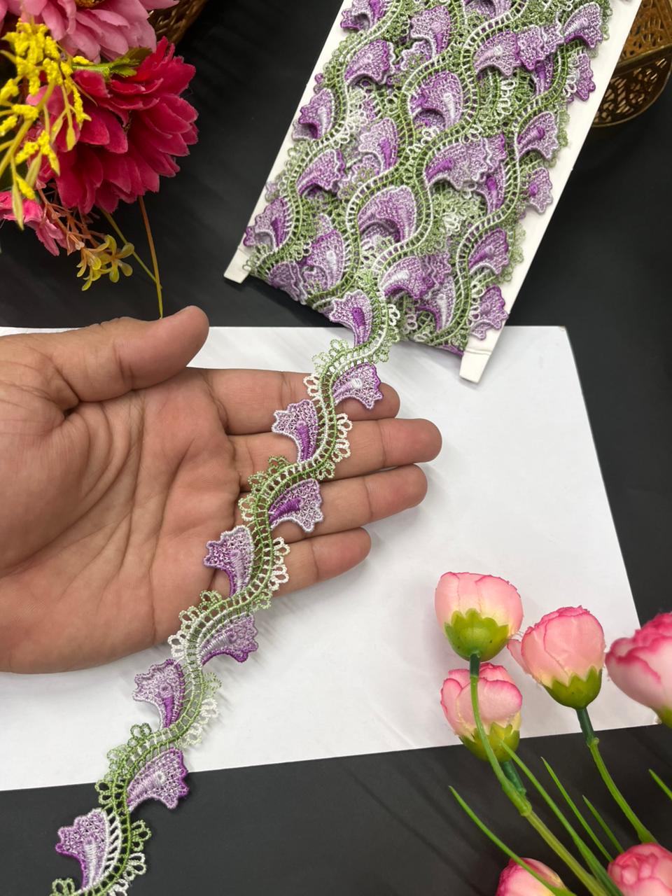Imported Guipure Cotton Multicoloured Lace & Trims – Designer Border for Sarees, Lehengas & Dupattas (9 Meter, 1 Inch Width) | Purple