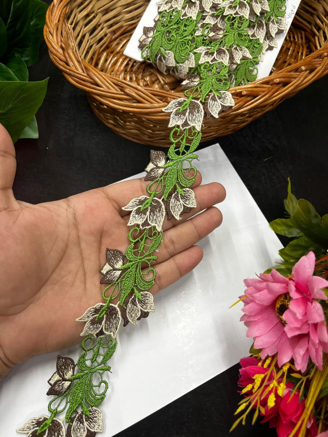 Imported Guipure Flower Lace Trim | Cutwork Western Designer Border for Sarees, Gowns & Ethnic Wear (9 Meter, 1.5 Inch Width) | Brown