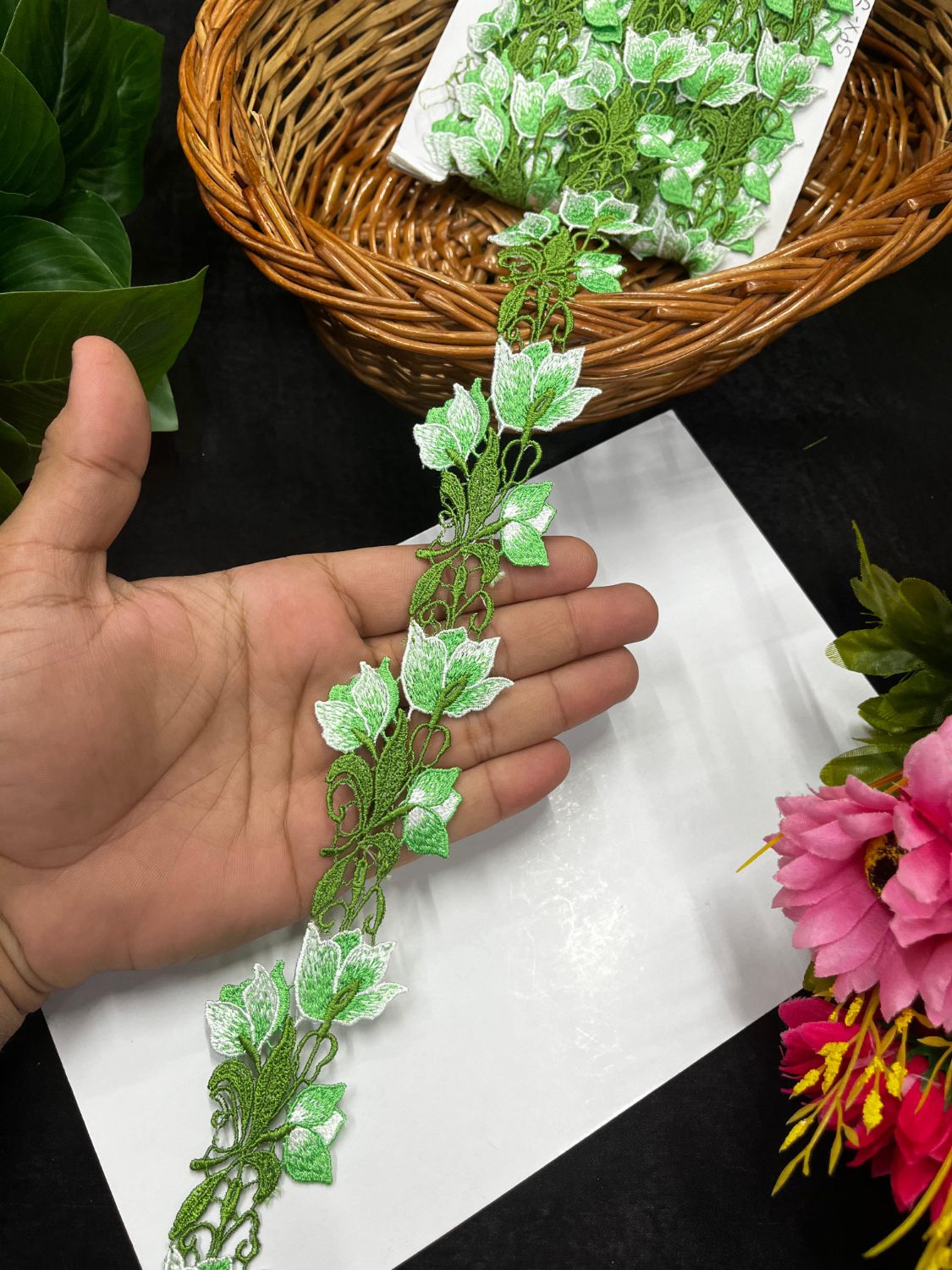Imported Guipure Flower Lace Trim | Cutwork Western Designer Border for Sarees, Gowns & Ethnic Wear (9 Meter, 1.5 Inch Width) | Green