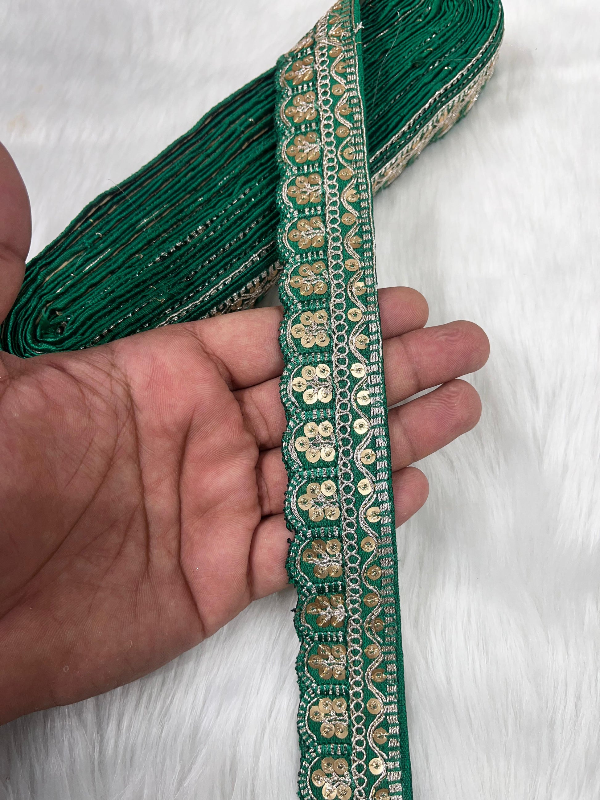 Indian Saree Lace Border Embroidered Trim - Floral Thread Decorative Ribbon (9 Meter) | Green